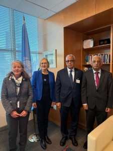 عقد وزير الشؤون الاقتصادية والتنمية، عبد الله ولد سليمان ولد الشيخ سيديا، اليوم الجمعة في نيويورك، جلسة عمل مع إليزابيت اسبيهار، الأمينة العامة المساعدة للأمم المتحدة المكلفة بتعزيز السلم ورئيسة صندوق تعزيز السلم.