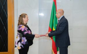 تسلّم رئيس الجمهورية، السيد محمد ولد الشيخ الغزواني، اليوم الثلاثاء بالقصر الرئاسي في نواكشوط، أوراق اعتماد سعادة السيدة سابل فالوا، بصفتها سفيرة فوق العادة وكامل السلطة لدولة كندا لدى موريتانيا