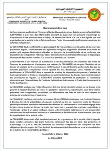أكدت مفوضية حقوق الإنسان والعمل الإنساني والعلاقات مع المجتمع المدني متابعة قضية يُشتبه بأنها تتعلق باستغلال قاصرة في ولاية نواكشوط الشمالية، تم التبليغ عنها من إحدى منظمات المجتمع المدني، وهي حالياً قيد التحقيق أمام الجهات القضائية المختصة.