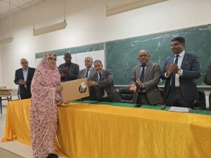 وجرى الحفل بحضور رئيس الجامعة، البروفسور علي محمد سالم البخاري، ومدير الوكالة الوطنية للبحث العلمي والابتكار السيد الطالب اخيار اجيه الشيخ ماء العينين، إلى جانب الأمين العام للجامعة السيد محمد عبد الجليل احويبيب، ورئيس السلك الوطني للأطباء الموريتانيين، وعدد من عمداء كليات الجامعة وأطرها الأكاديمية.
